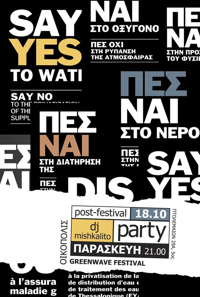 Έπεσε η αυλαία για το 3ο Greenwave festival και η οργανωτική επιτροπή επιθυμεί να ευχαριστήσει όλους και όλες εσάς που στηρίξατε αυτήν την προσπάθεια και συμβάλατε στην μεγάλη επιτυχία του Greenwave festival 2013, με μια γιορτή. Οι 4 ημέρες του φεστιβάλ και οι χιλιάδες κόσμου που το στήριξαν με την παρουσία τους μας γεμίζουν αισιοδοξία και δύναμη για τη συνέχεια. Γιατί ο αγώνας για την υπεράσπιση των δημόσιων αγαθών, της δημοκρατίας και του περιβάλλοντος είναι διαρκής και, σήμερα περισσότερο από ποτέ, αναγκαίος. Ελάτε να γιορτάσουμε μαζί κλείνοντας αυτόν τον κύκλο και εγκαινιάζοντας ένα νέο ο οποίος θα χωράει όλο και περισσότερους ανθρώπους σε μια κοινή συστράτευση στον καθημερινό πια αγώνα για την υπεράσπιση της ίδιας της ζωής!